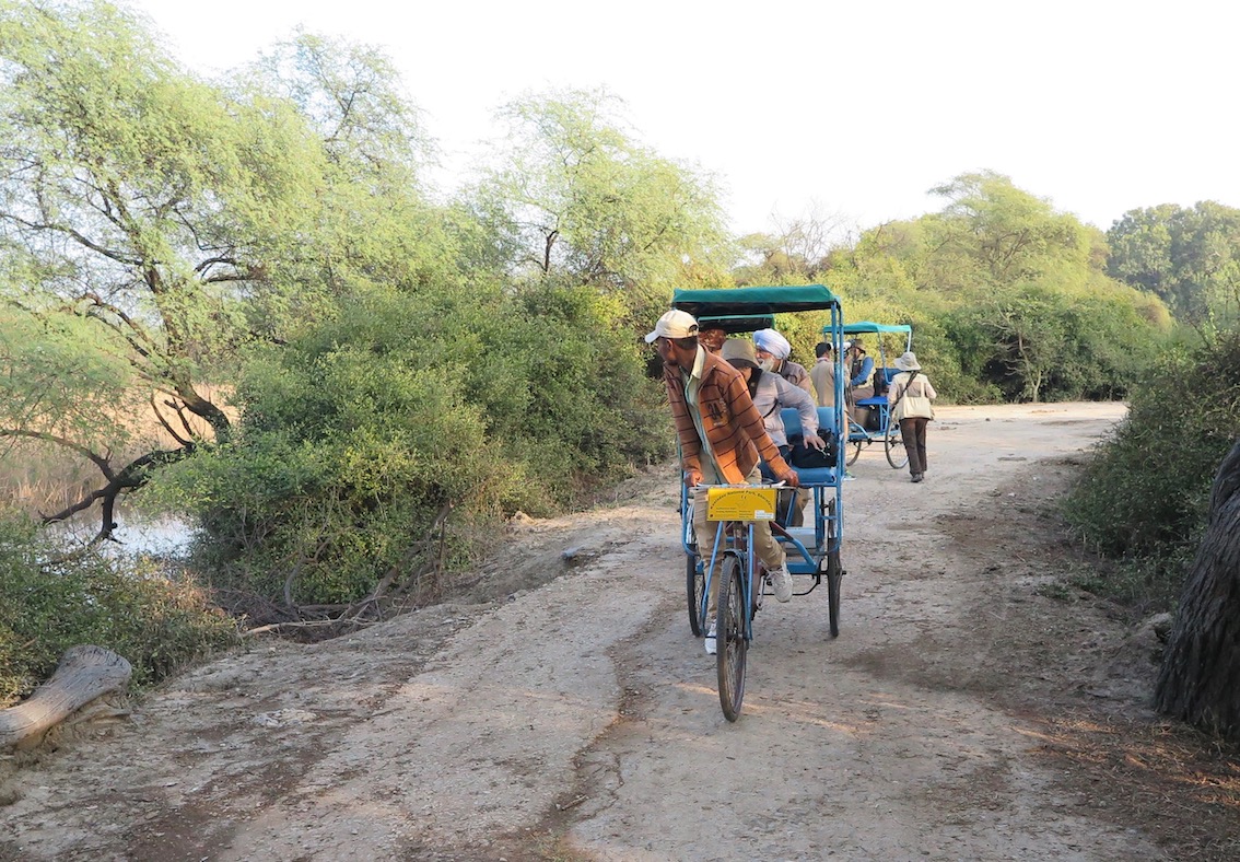 | 三輪車伕們首先帶我們到棵樹下,他們先下車,東找西找,似乎在找某種鳥 |