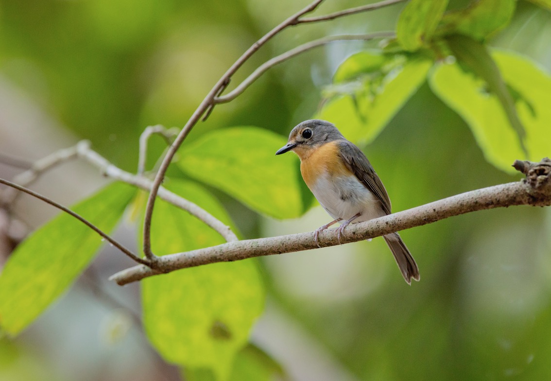 | 正面看 蒂克氏藍仙鶲 Tickell's Blue Flycatcher,體型約15公分,胸部橙紅色 |